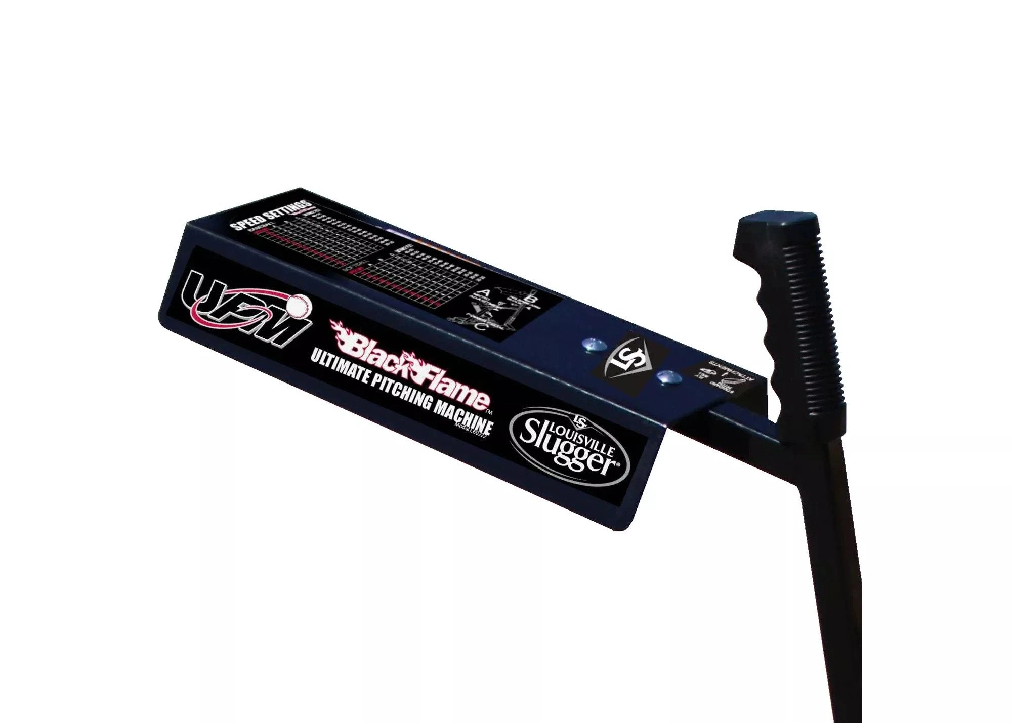Versatile enough for batting practice, infield and outfield drills, the Louisville Slugger® UPM 50 Black Flame Pitching Machine is the ultimate training tool.