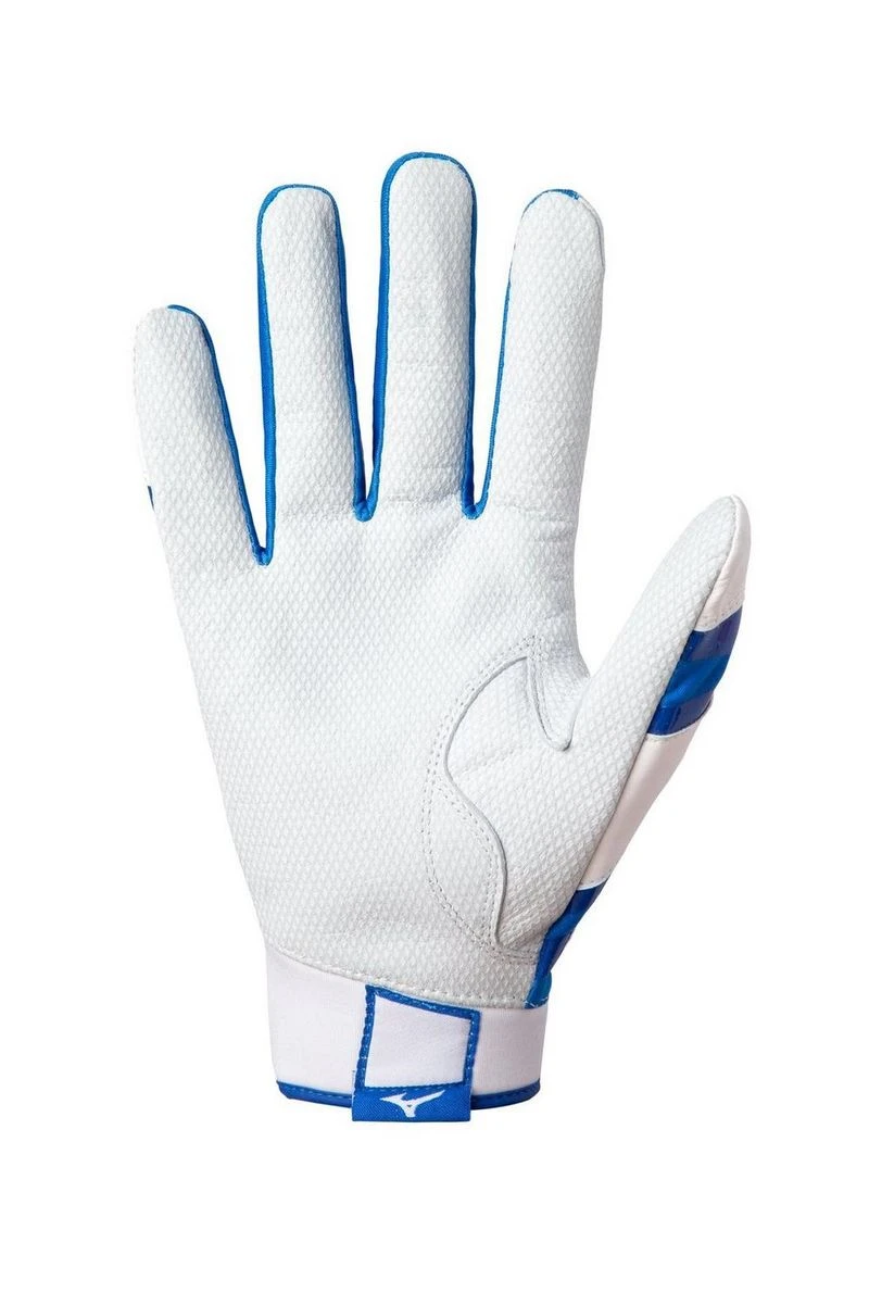 A popular batting glove that is power-packed with premium features. Made with embossed full grain leather palm to give players a combination of a great feel with increased durability. Designed with Mizuno AirMesh for maximum flex and breathability. Our quick adjust wrist tab gives players a secure fit. Made with a neoprene wristband with a PNP™ (Personalized Number Plate) to give players a customization option.