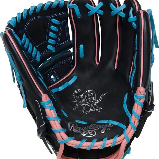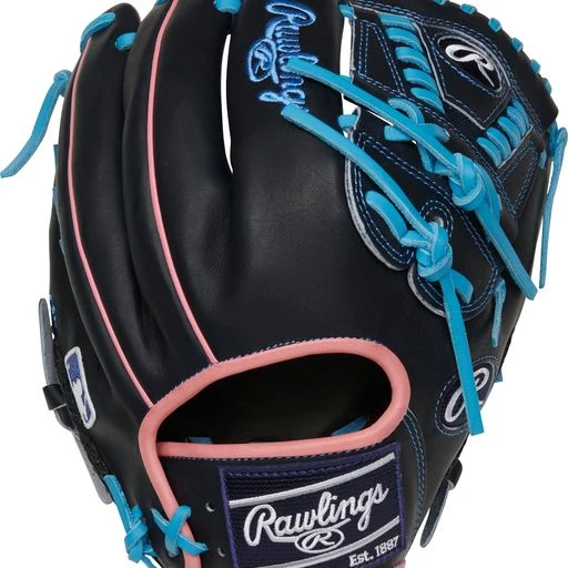 The freshest gloves in the game are here: It’s the Rawlings ColorSync Heart of the Hide series! This 11.75-inch glove is sure to catch everyone’s eye, whether you’re using it on the mound or in the field. The black Heart of the Hide leather is complemented by light pink and blue accents throughout the glove, making this a truly standout gamer. Plus, the laced 2-piece web gives you plenty of pocket to grip pitches while also giving you a versatile option in the infield. The ColorSync series is known for perfectly blending style and function on the field, and this glove is a perfect example of why.