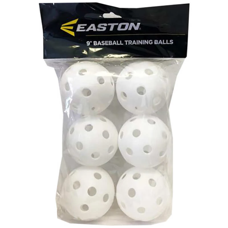Easton plastic training balls are built to last and get the most out of your practices. Includes 6-pack of 9 inch white plastic training balls.